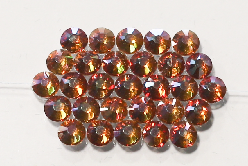 Single Gross Packs (144 pieces) Our beautiful, flat-back, rhinestones have a foil backing with the exception of transparent stones which have no backing to allow whatever color fabric is underneath the stone to show through.