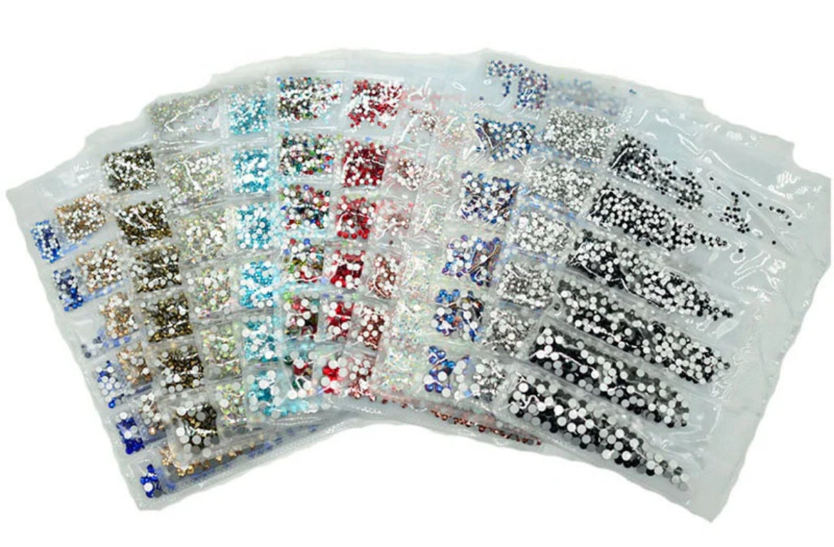 Multi-Sized Flat-back rhinestones are perfect for projects like tumblers, phone cases, shoes, and other accessories. These rhinestones are applied with glue. They have a foil backing (except for transparent stones which allow the color under the stone to show).
